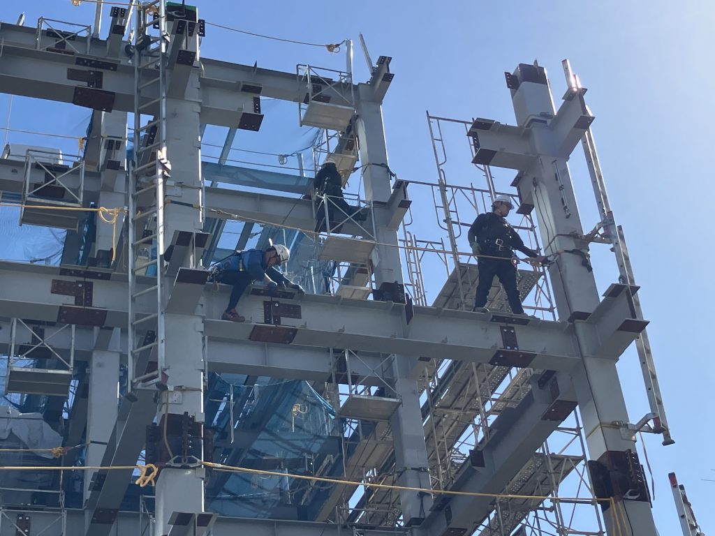また、建て方に使われている鉄骨ですが、接合部が茶色く錆びているのが見えます。