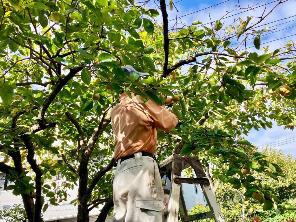 今年もベテランHさんが脚立を使い、柿を収穫してくれました。