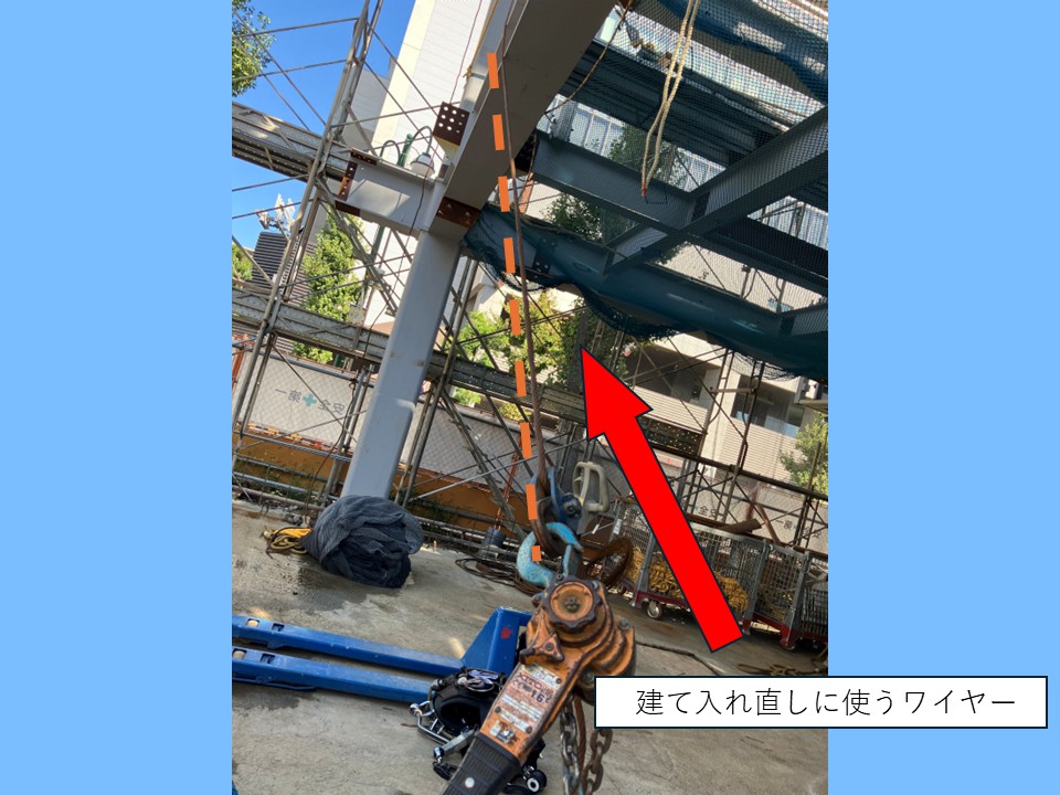 そして、鉄骨の傾きの調整に使われるのが、この太いワイヤーです。