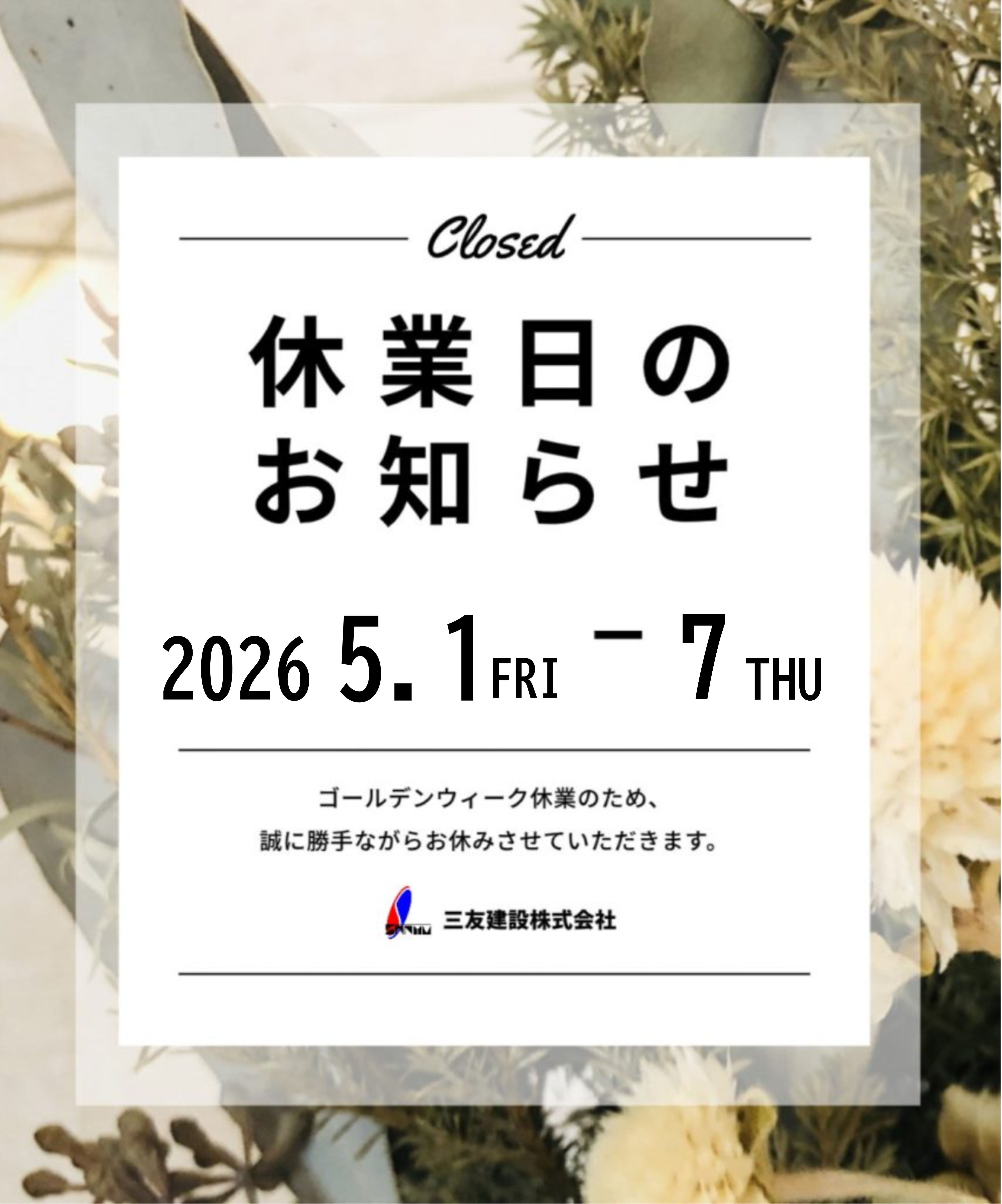 休業期間:2024年5月2日(木)~2024年5月6日(月)