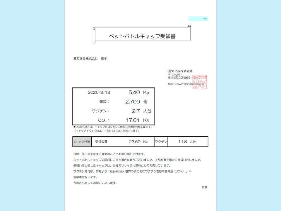2026年3月27日エコキャップ運動への参加について